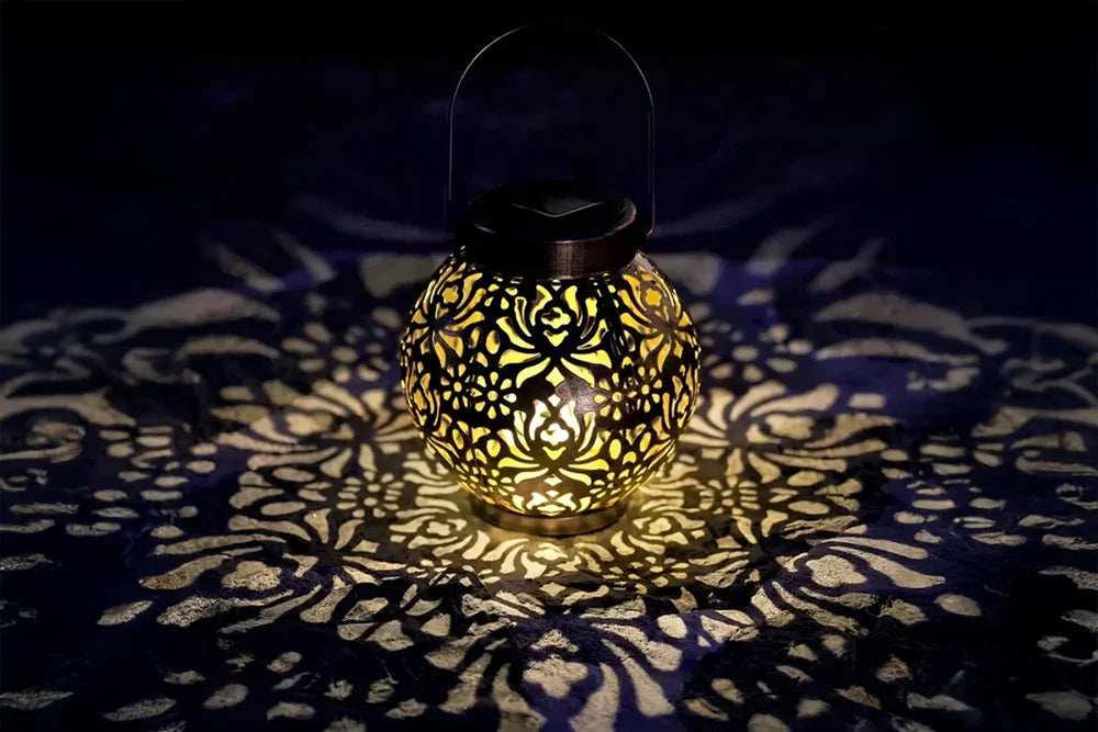 Varm stämningsbelysning med invecklade mönster skapar en avkopplande atmosfär perfekt för kvällar, inredning och mysiga stunder.